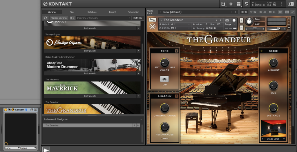 El piano también lo hemos emulado usando el instrumento “The Grandeur” de Kontakt, más abajo explicaremos cómo integrarlo en el Beat.