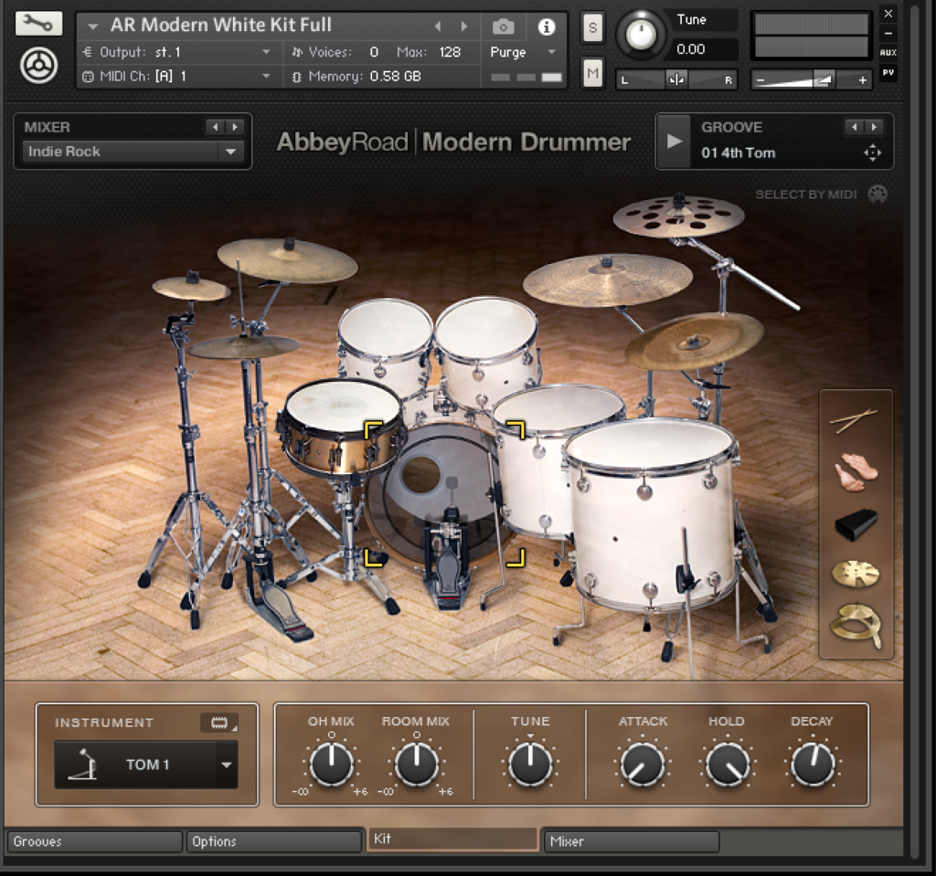 Para emular la batería, podemos usar el instrumento AbbeyRoad Modern Drummer de Kontakt o bien, con los samples que puedes descargar al final de este post.