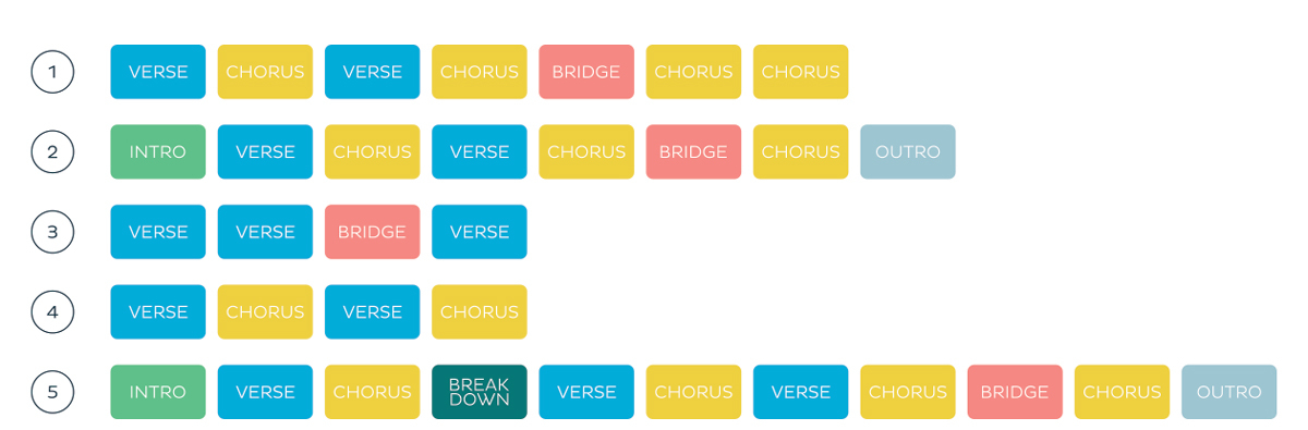 Ahora que ya sabes cuales son los elementos principales de una canción y la estructura básica es el momento de ver qué estructura es la más adecuada para tu canción.