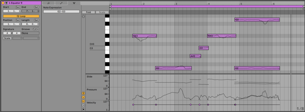 Lo mejor de todo, la nueva vista de Note Expression en la caja de clip, en donde tendremos el control visual de las diferentes opciones de edición de MPE: Pitch, Pressure, Slide, Velocity y Release velocity.